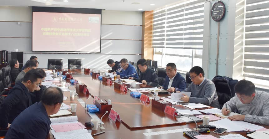 2025年11月21日下午,校党委副书记、纪委书记申祖武主持召开学校第四届纪律检查委员会第十八次全体会议。纪委办公室、监察工作部有关同志列席会议。会议严格执行“第一议题”学习制度,集体学习党的二十届四中全会精神,全面总结第四届纪委过去五年的工作,研究部署下一阶段重点任务,审议并通过了《中国共产党中南财经政法大学第四届纪律检查委员会工作报告》。